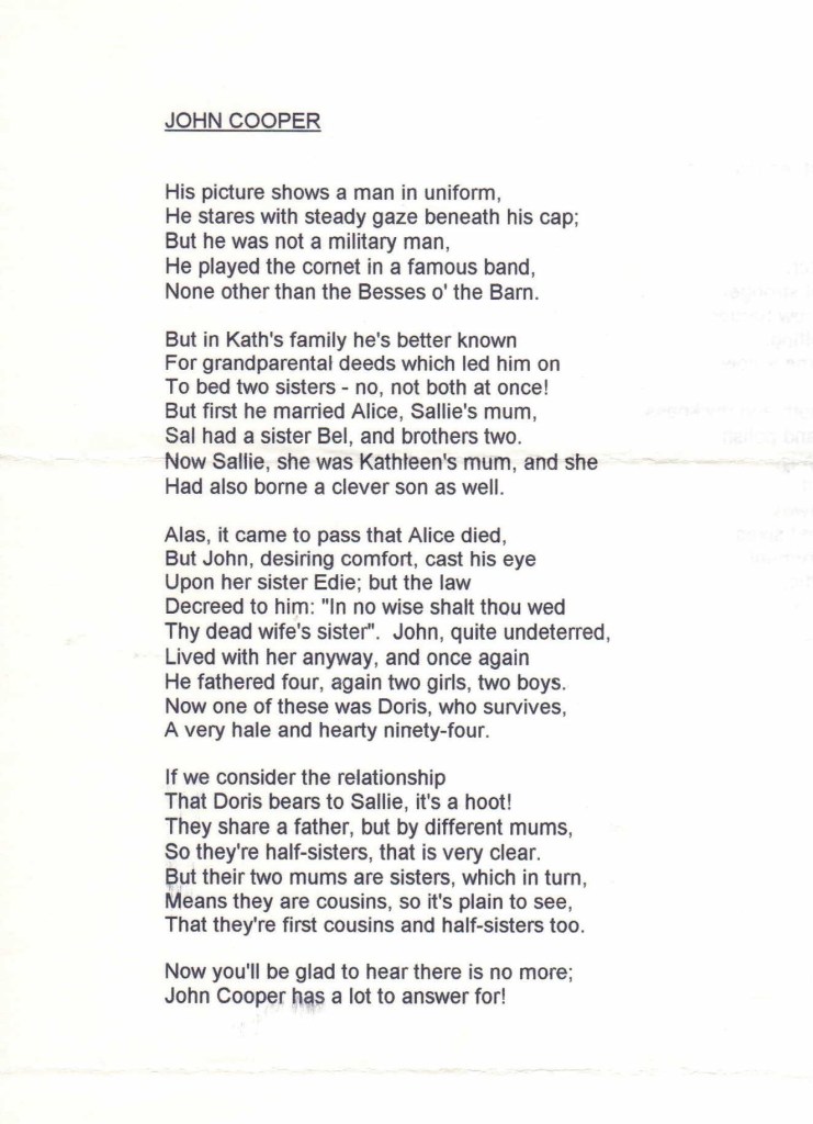 Sarah Emily Cooper was born on 19 March 1887 in Chirk, just inside Wales. Her father John Cooper was a brick and tile maker who had moved there from the Potteries in Staffordshire.