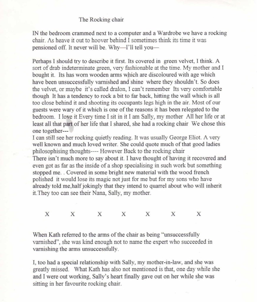 The day Sallie died, our cleaning lady Mrs Galloway, known to us as “Gorgeous Gus” found her in her favourite rocking chair, with Tumbi at her feet.