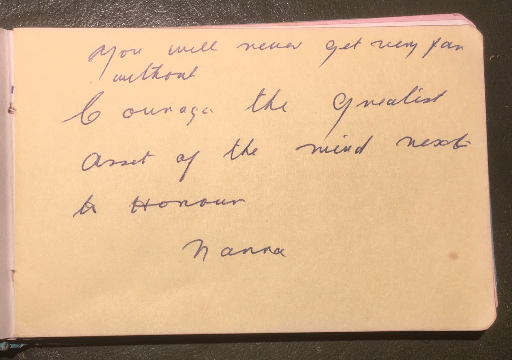 […] Grandpa. So our parents used those names to distinguish them from our (more) English grandparents, Nana and Gan-gan I am lucky to remember all four of our grandparents, although Nain – Maggie as […]