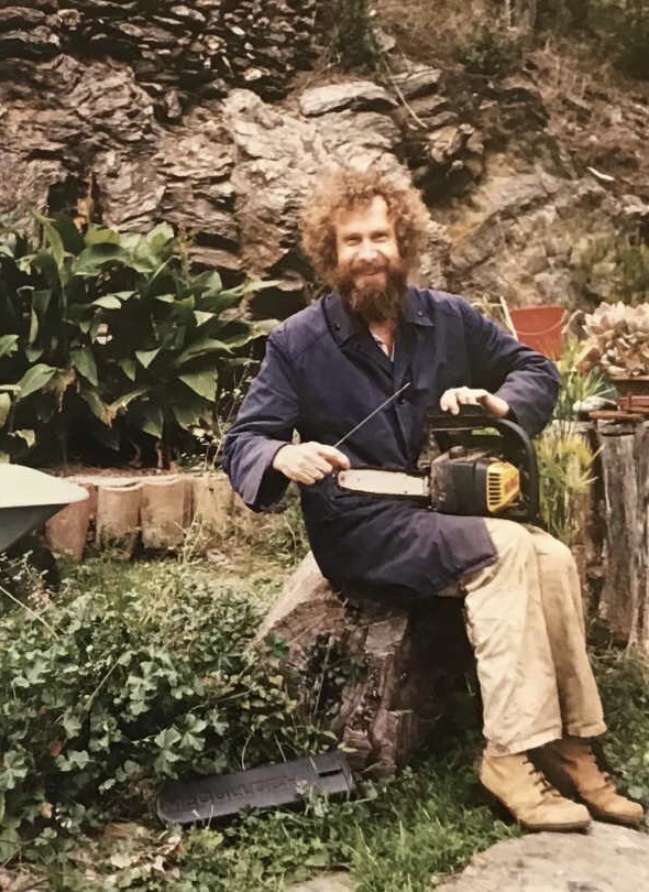 We have a photograph of David, seated on a low wall, nursing a chain-saw in his lap. His unruly red hair and beard take me straight back almost eighty years, learning my numbers by the roaring fire.