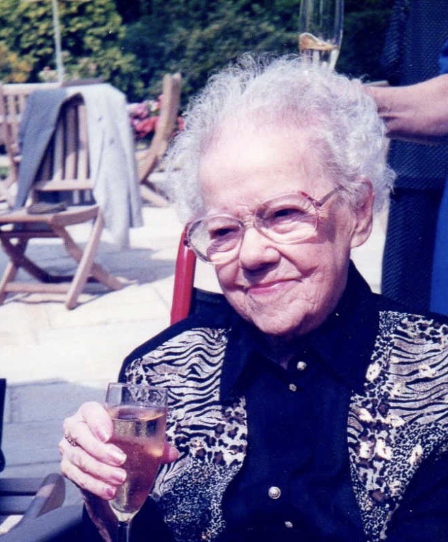 The day dawned fine and bright, and by midday was getting warm. The invitations had said “12 noon for 1pm: informal dress” and they started rolling in, and were all present and correct by one o’clock, chatting on the patio clutching glasses of champagne and orange juice. The guests had come from far and wide, not only from the four corners of England, but from Scotland, Wales, France and Switzerland. Apart from Kath and myself, there were six survivors of the wedding day, of whom four were present, including my nephew David, who during the whole wedding service fifty years ago was fast asleep in his carry-cot at the back of the church. A very special guest was Kath’s ninety-eight-year-old Auntie Doris.
