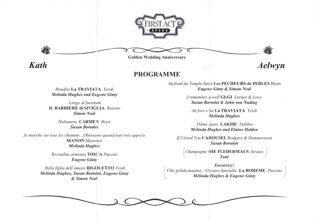 And for the next hour we were regaled with solos, duets and quartets from all our favourite operas, and other music that reflected our fifty years together. It was absolutely amazing, a most wonderful surprise addition to our celebration.