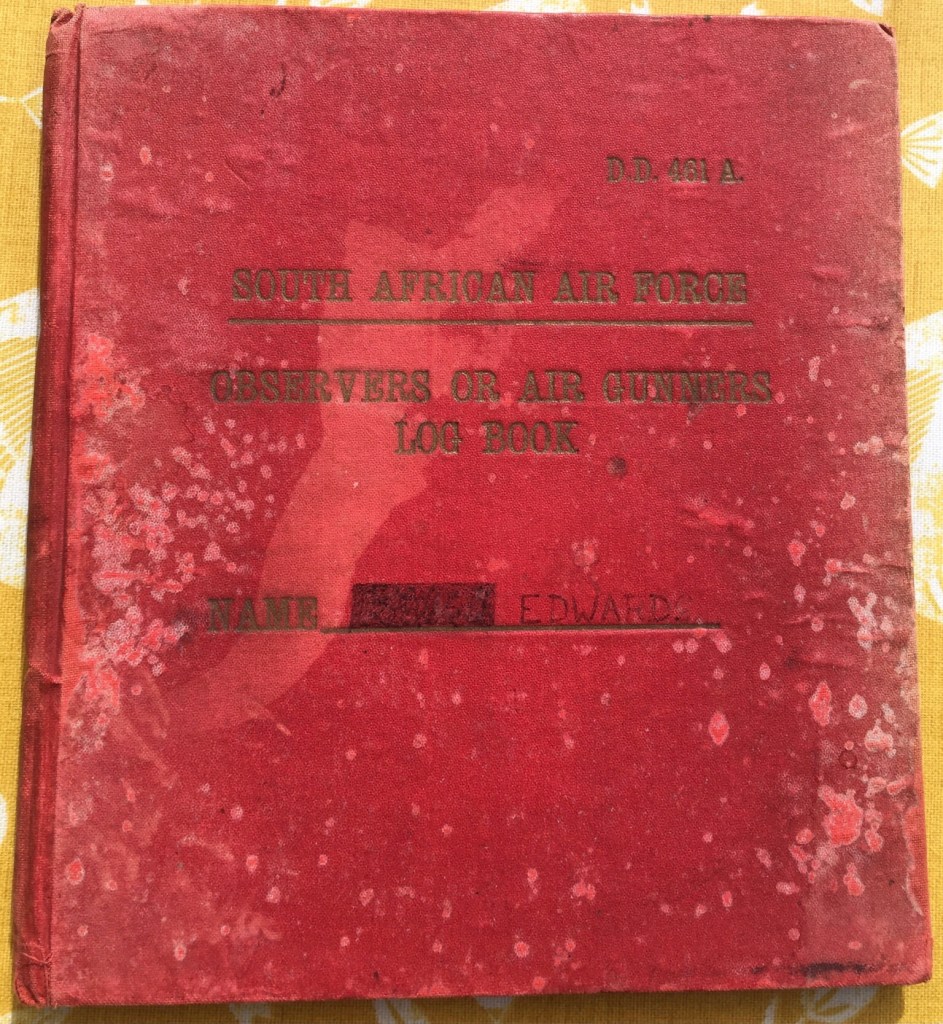 It is actually a red South African Air Force Logbook, since that is where I started flying training. It is a potted history in itself, from the first tentative entries to the final flurry of innumerable flights to remote areas of Burma, where the army on the ground would be waiting for their supplies. Part of the cover of the book is stained a pale yellow colour by the mildew that accumulated on it during the abominably hot, steamy monsoon.