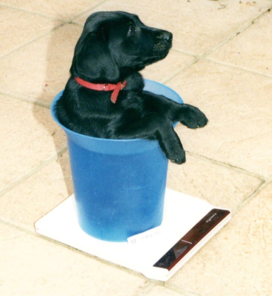 Debbie had grown up with an elderly black Labrador called Snudge, and that became our choice of breed. By the autumn of 2002 we were the proud owners of Tasarla Cracker, puppy of Tasarla Black Jewel Ginty, sired by Hatchfield Feargal, a Field Trial Champion. When we visited the breeders to choose one of the litter, Cracker ran over to say hello, wagging his tail and licking our hands: he had been adopted by the breeders’ daughter, who had carried him about. As a result he was super friendly, both to people and to other dogs. In his playful enthusiasm he tugged at my shoelace and managed to untie it. This was the dog for us.