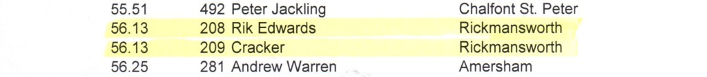 At one point in the race we came to what seemed an impossible stile for him to pass through: while I was fretting and scratching my head about what to do next, he got bored with my dithering, took a run-up and leapt clean over, landing safely on the other side.
