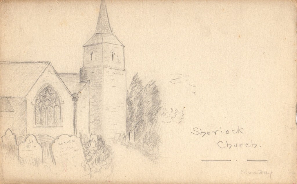 Tantalisingly, Harry refers to several photos which he or his father took. Unfortunately during World War II all his photos were moved from his house in Harrow to the “safety” of his daughter Ruby’s house in Hampton Wick. Ruby’s house then took a direct hit from a German incendiary bomb. Fortunately Ruby was not in the house, and was unharmed. The photos were all destroyed, but Harry’s “Chronicles” and sketchbook hadn’t been sent to Ruby’s house, and we still have them.