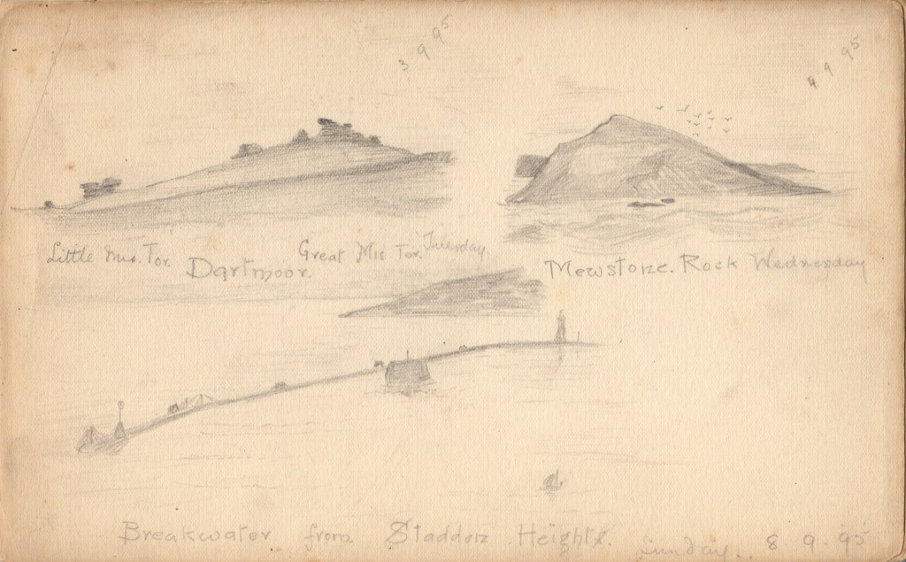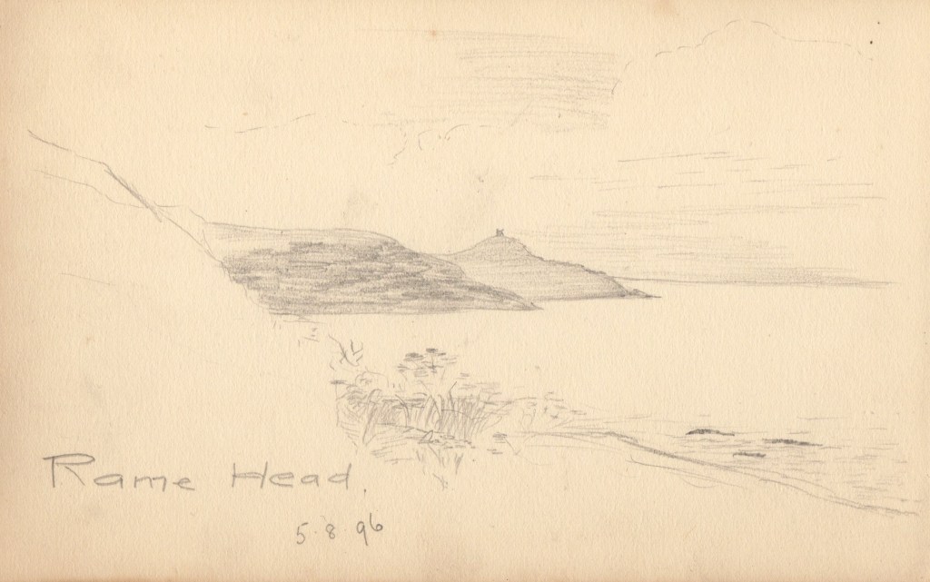 The walk thro’ Penlee woods to the Point was charming, but we were beginning to tire now, and after a good rest, and a paddle on the beach at Penlee Point, we made the rest of our way back to Plymouth, & arrived there tired out.