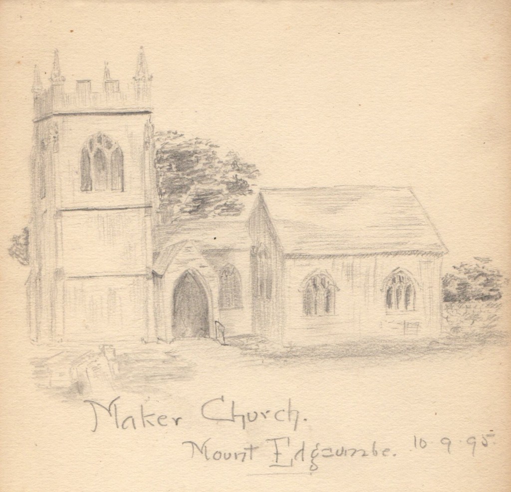 Wednesday Sept 4th To day we went a circular trip by the steamboat “Alexandria”. Going round the Sound, we passed the Breakwater, & fort, & then steered for Cawsand Bay, round Mount Edgecumbe & up the Hamoaze, – the name given to the estuary of the Tamar. This part of the journey was very interesting, as the river here, is dotted with every type of modern warship, & also a good many of the old “wooden walls of England” now used as training ships & floating hospitals.