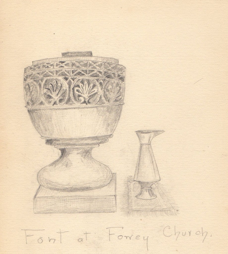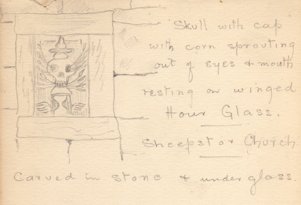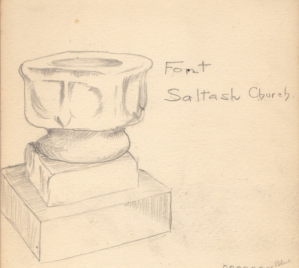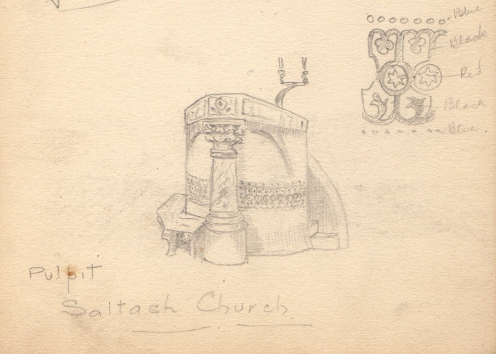Harry’s detailed line drawings – which appear several to the page in the “Chronicles” – were probably drawn indoors. We also have a book of pencil sketches, many of which he dated, which were presumably executed on location. I have added these to the text according to date, where given: otherwise according to a relevant place in the narrative.