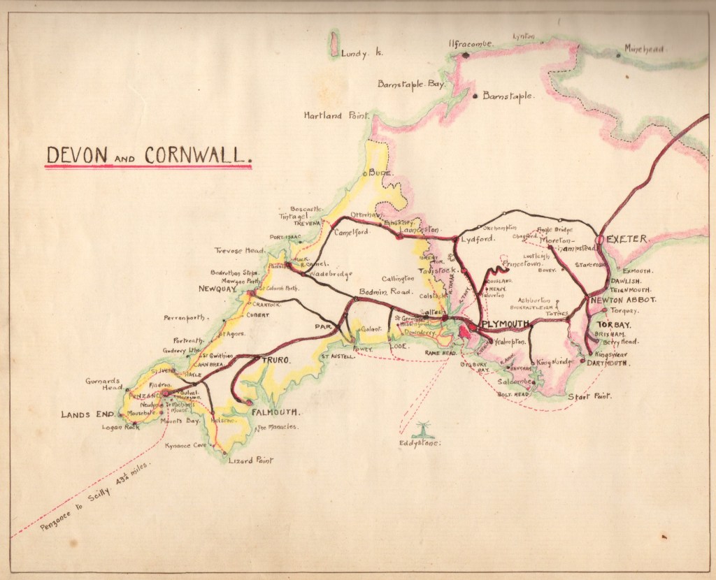 This year we started our holidays on Monday, September 2nd. Leaving Paddington by the 3 o’clock train, the “Zulu” we arrived at Millbay station about 10 o’clock. & being tired, soon went to bed.