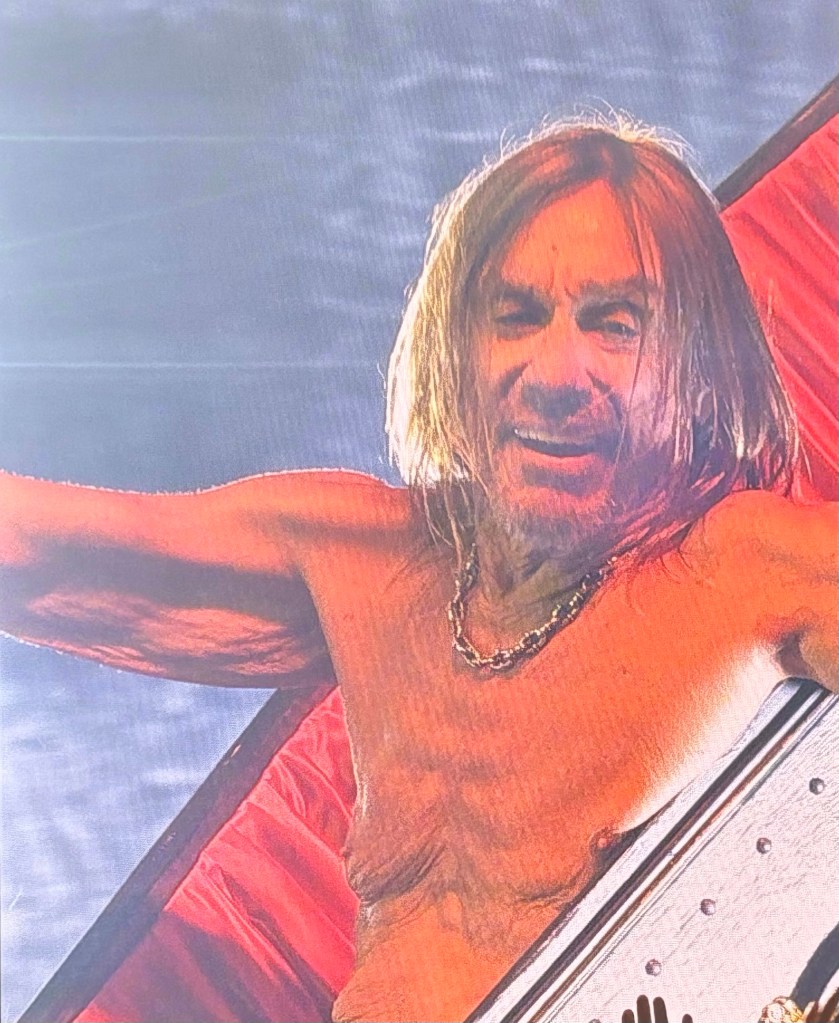It was time for Iggy Pop. Due on stage at 9.10 pm, he didn’t appear until 9.12, which I found disappointing: one thing you expect from Sir Igworth Newell Poplington is punctuality.
